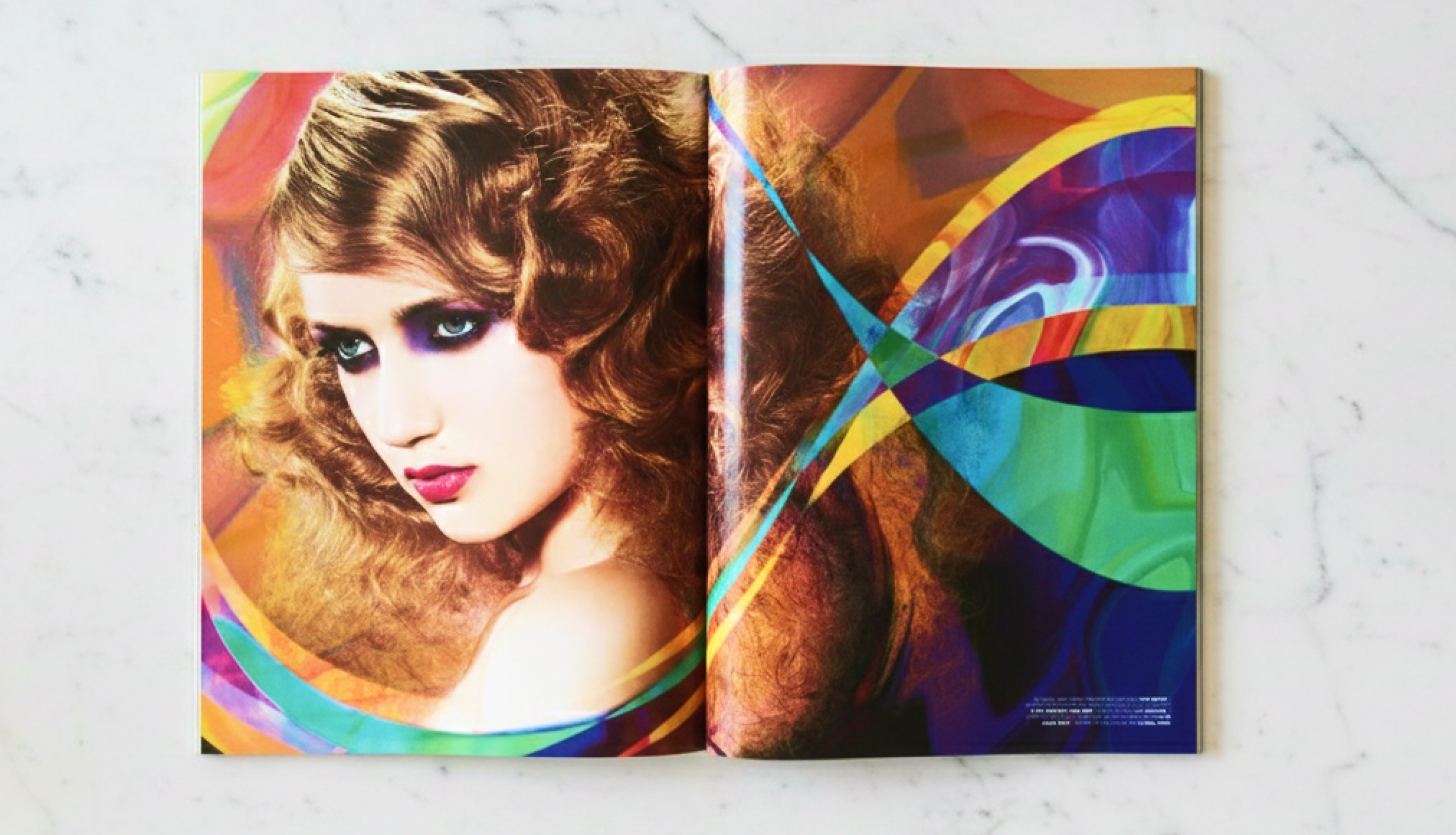 For the first editorial, I created a watercolor painting on wood, then scanned it to layer in texture and color across the series, giving the spreads a tactile, painterly depth.