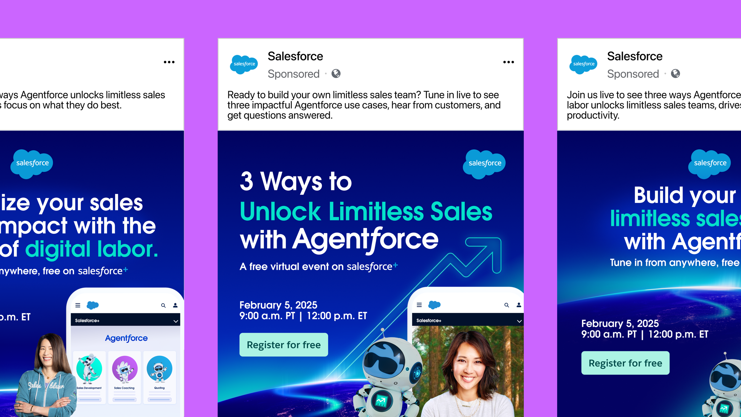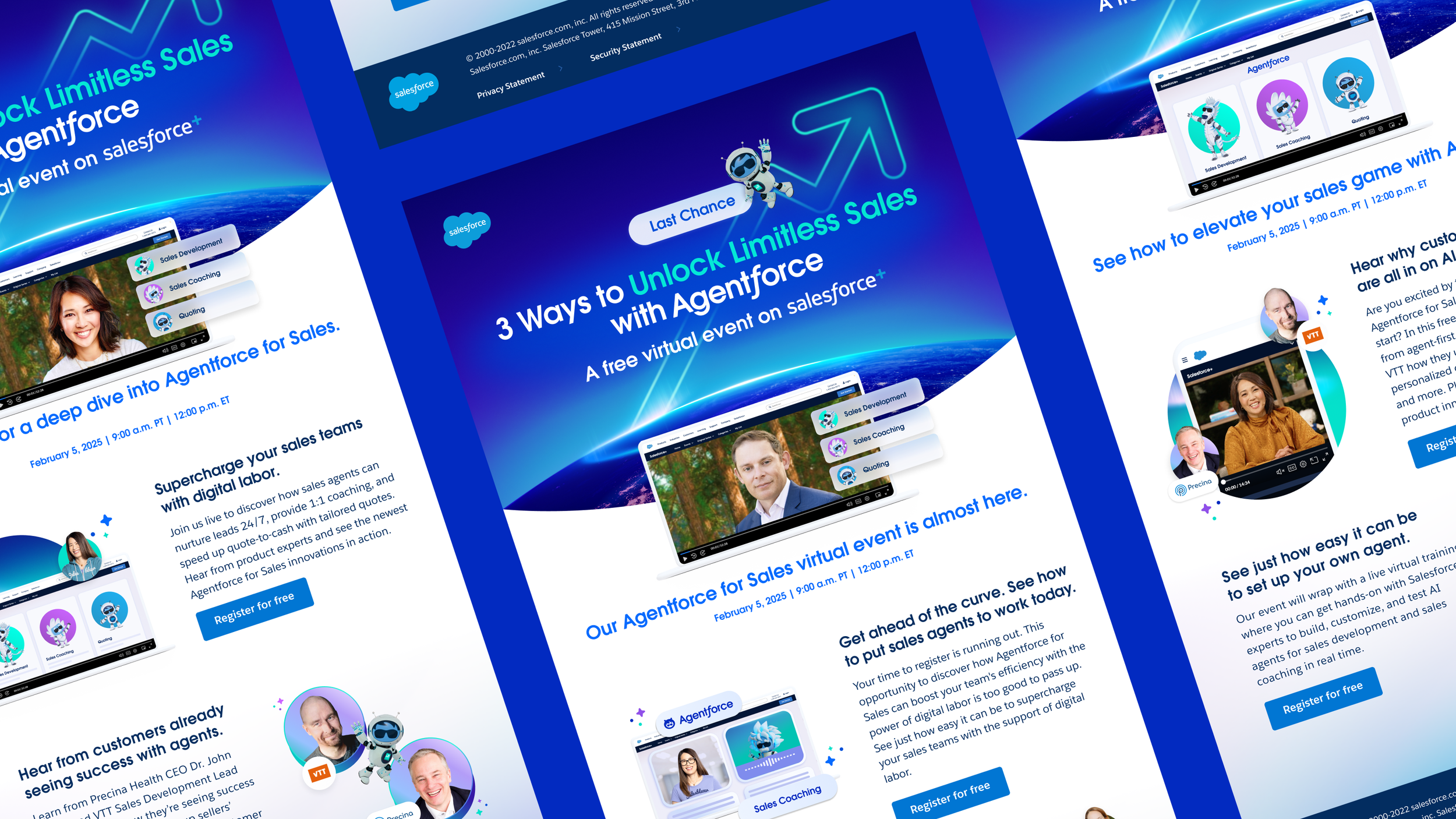 As Creative Director for Salesforce’s flagship products, I set the annual creative vision and lead the creative team to elevate brand expression across every touchpoint.